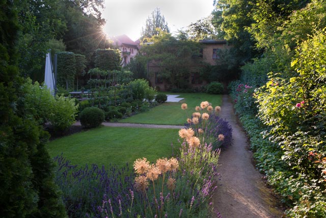 Angeregt durch meine Vortragsreihe im Rahmen der GaLaBau-Foren 2021 ‘Garten-Akzente- kreativ denken, emotional erleben‘ wurde mir erneut die Bedeutung von Blickpunkten in einem Garten und deren Akzentuierung bewußt. Anregungen aller Art durch die besondere Anordnung von Gehölzen oder Stauden sind ebenso gefragt wie Strukturen, Farben, Formen oder eine auffällige Bodenbewegung. Überraschungen können Mäuerchen, Hecken, Wasserspiele, Stufen oder ein Pavillon sein und zu einem erfrischenden, vielleicht sogar unvergesslichen Anblick beitragen. Das Interesse sollte stets lauten: Grünanlagen können Ruhe ausstrahlen, aber dürfen niemals langweilig wirken. Nicht zu vergessen ist die Wirkung stimmungsvoller Licht- und Schattenspiele dank dezenter Lichtquellen (bevorzugt LED-Leuchtmittel wegen des geringem Strom-Verbrauchs). Auch Blickachsen und Ausblicke auf eine „geliehene Landschaft“ wie benachbarte Solitärbäume sind ein beliebtes Stilmittel, um einer Gartenanlage einen wichtigen Akzent zu verleihen. Diese Elemente hatte bereits der preußische Gartenkünstler Peter Josef Lenné (1789-1866) in vielen seiner genialen Schöpfungen effektvoll genutzt. Sie lassen sich noch heute in Potsdamer Parks oder im Landschaftspark in Wörlitz, der heutigen Unesco-Welterbestätte Dessau-Wörlitzer Gartenreich nachvollziehen.
